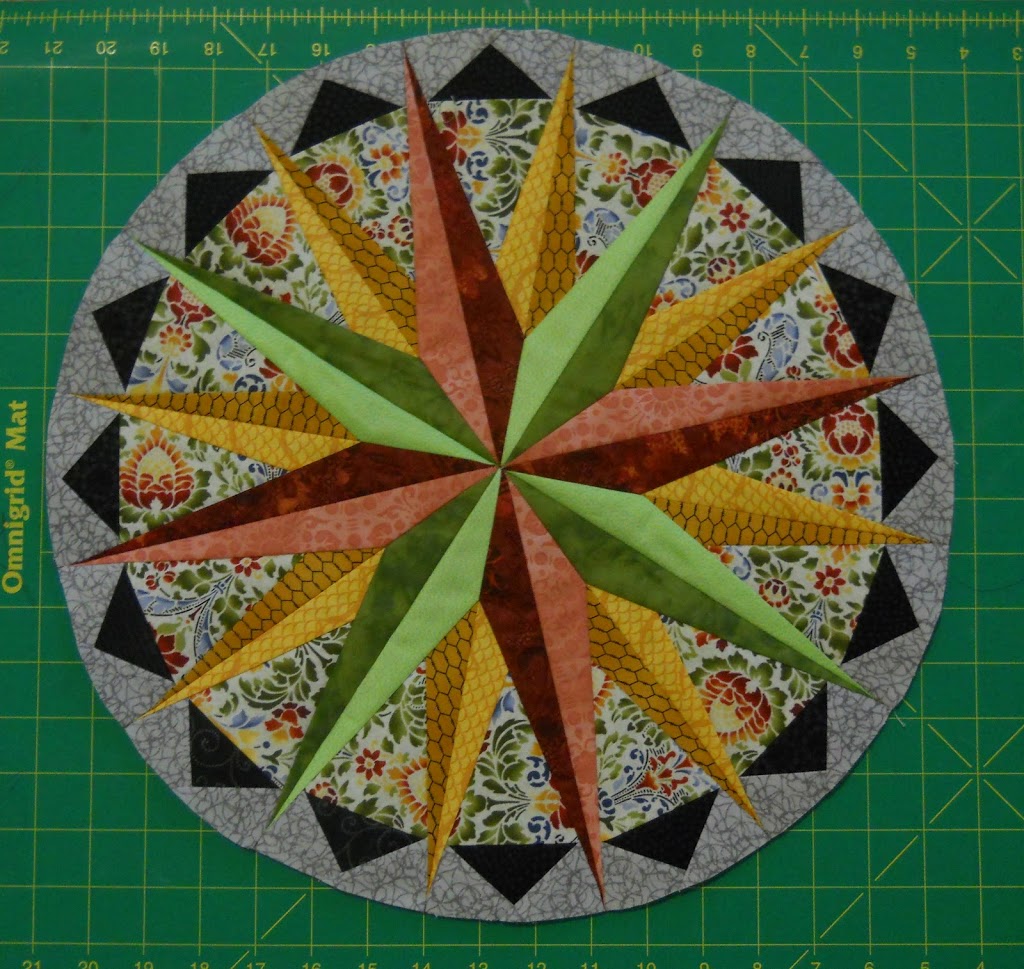 I finished my second monthly Mariner’s Compass Block! Can you say Sixteen Points in the Middle? I cannot believe how well that came together and there isn’t even a big giant nipple in the middle of the block from all that fabric.