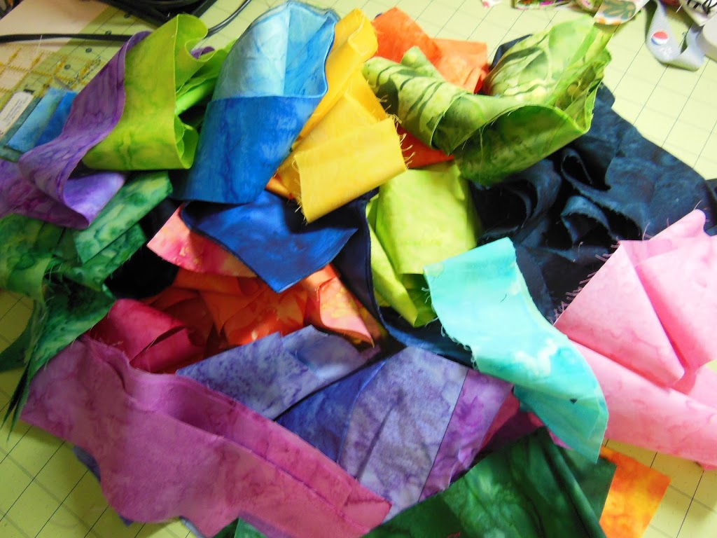 I opened up my drawers full of batiks and voila! tons of leftover strips from this quilt just begging to be used! So here is how it started….