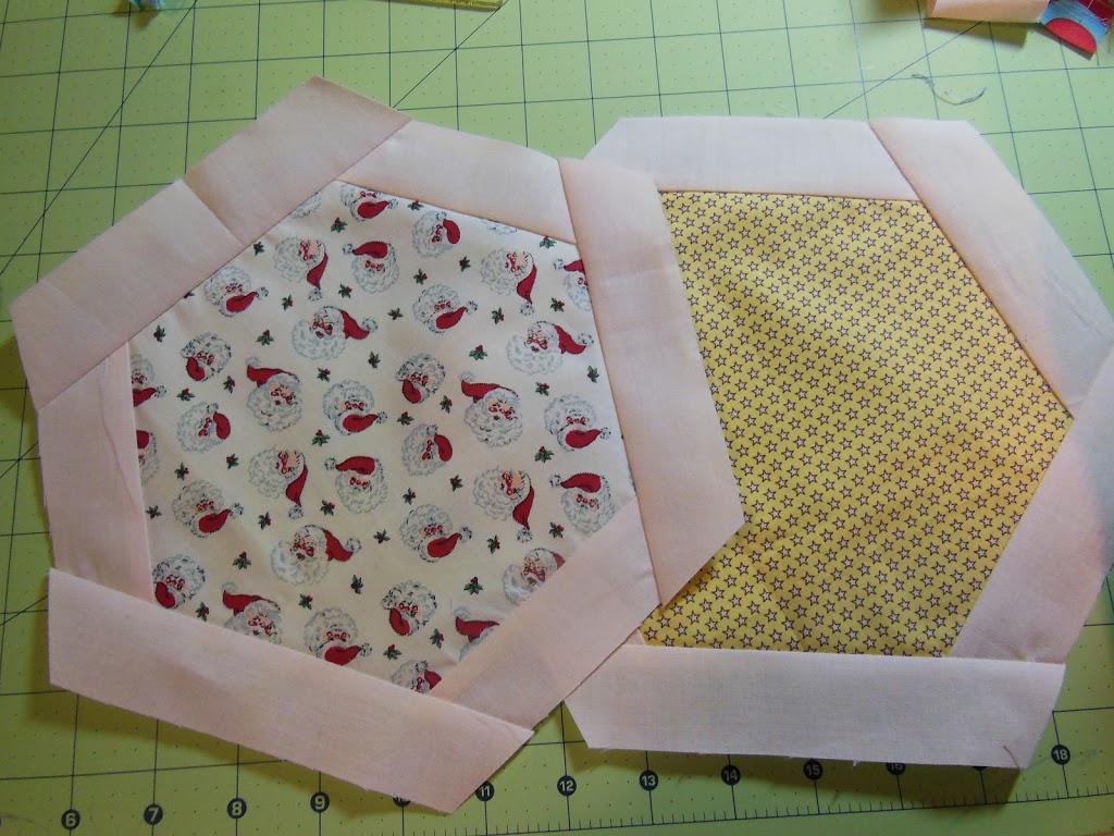 4. Hexagons always look nice! And there are so many ways to play with them, I like the way you added borders, I’m curious to see how you’re going to sew them together.