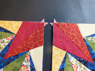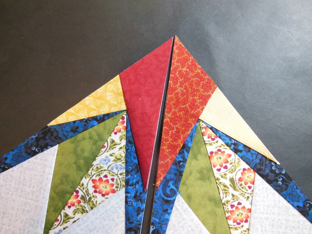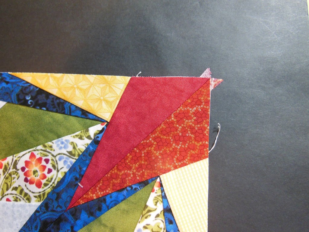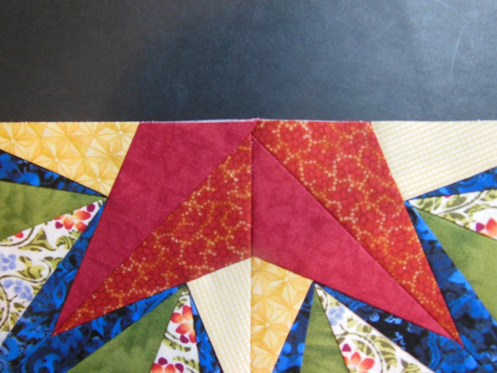 This technique works just as well for non-foundation pieced blocks where you have to intersect many seams and want to keep your points sharp and not have a hard lump where they meet.