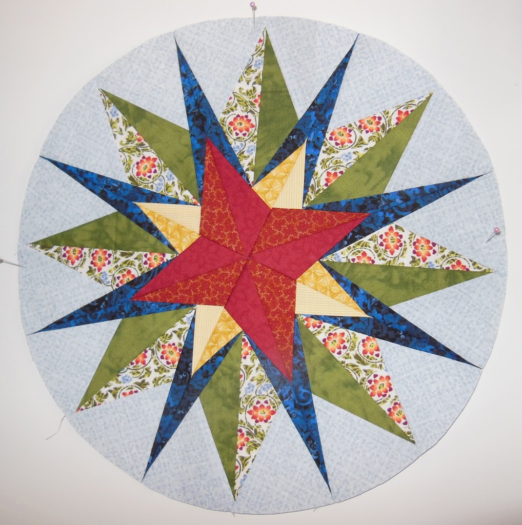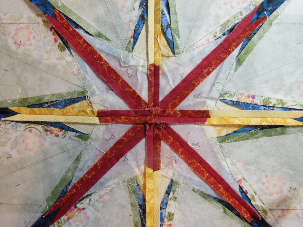 This post is dedicated to showing my technique for preventing those pesky Nipples and keeping points sharp where lots of seams come together. I am using my December compass block to demonstrate. My monthly compass blocks are all paper foundation pieced and have lots of points that come together in the center.