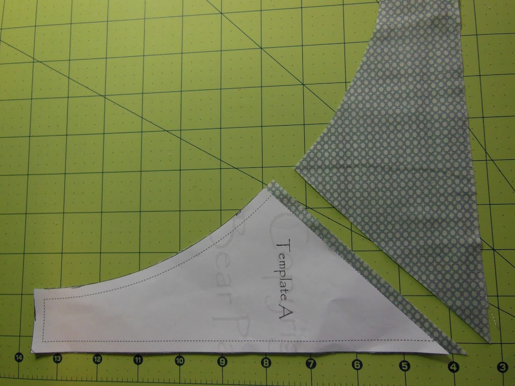 for the split background, I used half of the template, adding quarter inch seam allowance to the bias edge:
