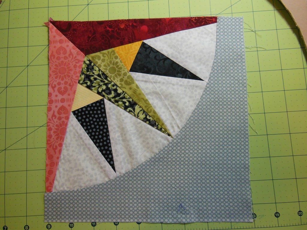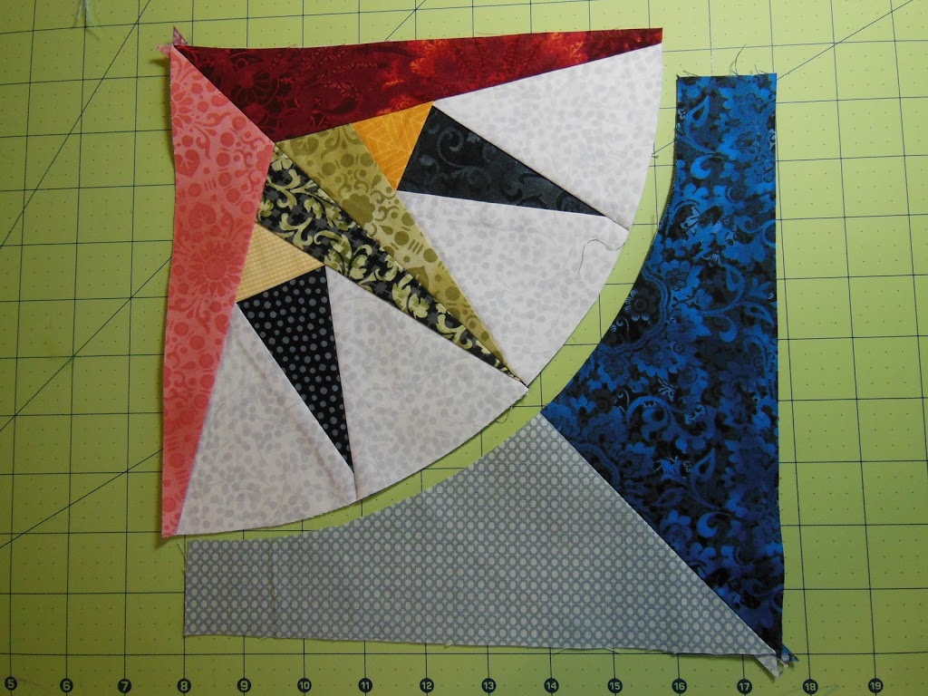 Stay tuned to see how to piece a full circle into a solid fabric background square.