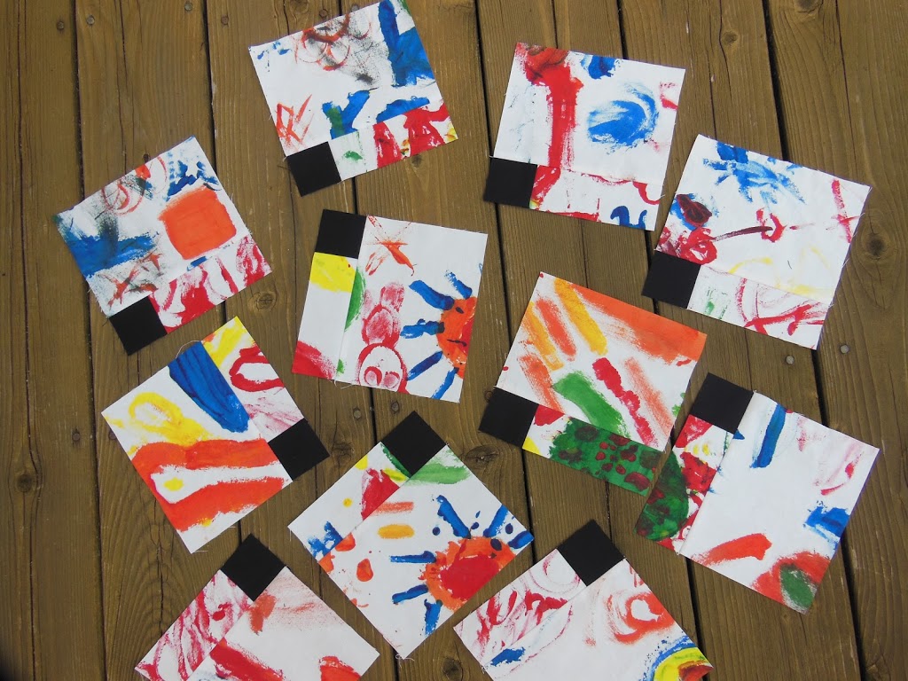 a sneak peek at the blocks made with the fabric painted by first graders. I am thinking they look pretty good! Hoping to get this top done this week and get to long-arm quilter before we leave for spring break trip next weekend.