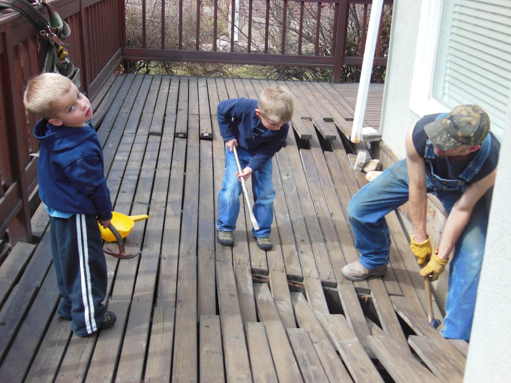 They also had a BLAST helping my older brother repair Mom’s deck: