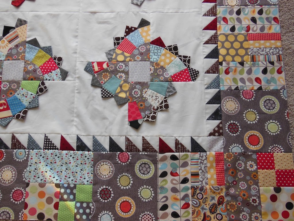 (I used scraps from my fan blocks to make the pieced components of my borders)
