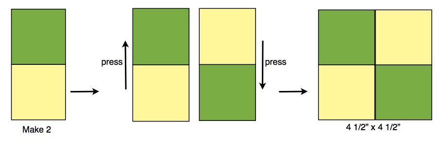 - sew the two units together, matching the center seams (if pressed opposite, they will snuggle together)