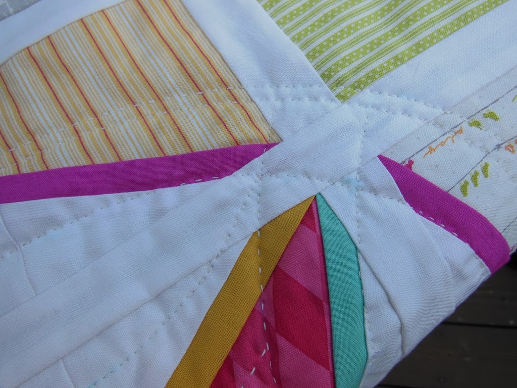 I had the idea because the patchwork design resembles a sort of geometric take on the classic double wedding ring pattern, so I thought is would be cool to superimpose that design with the quilting. It probably doesn’t show up well enough to be worth the effort, but it has been fun to do.