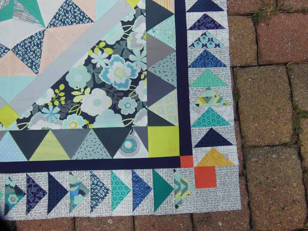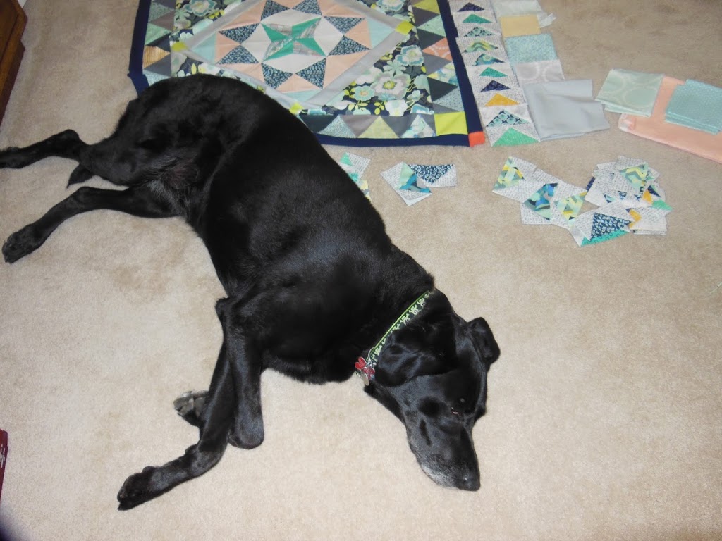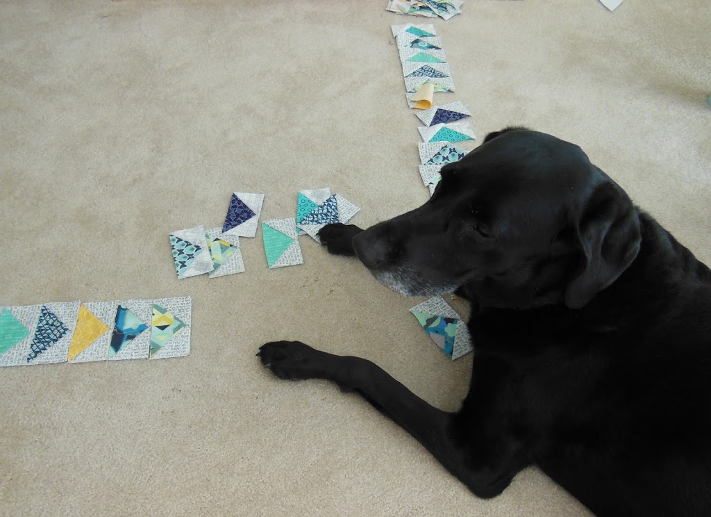 Last weekend, Cleo and I spent our spare time sewing up the flying geese border for Marcelle.