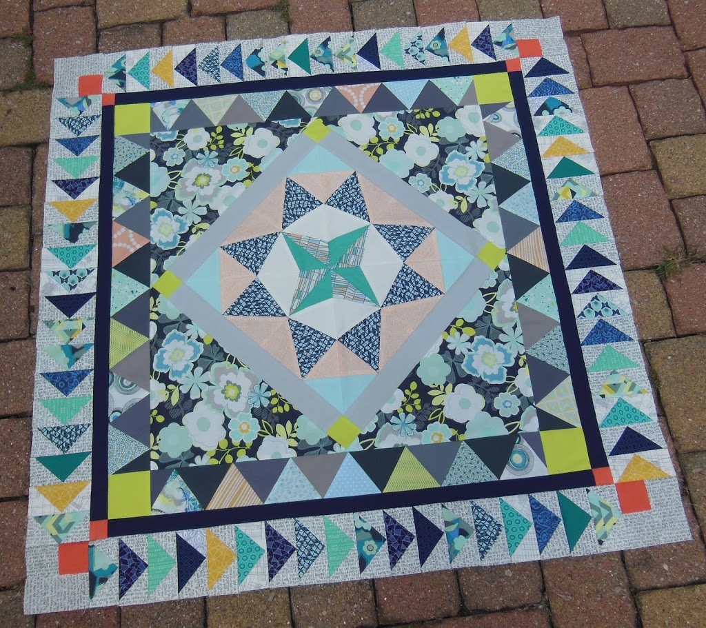 It has been a fun one to mix in with others. In July, I alternated between this and my blockbuster. Next, I am going to start on my Double Wedding ring for the NY modern quilt guild challenge. So we’ll go back and forth a bit in August again.