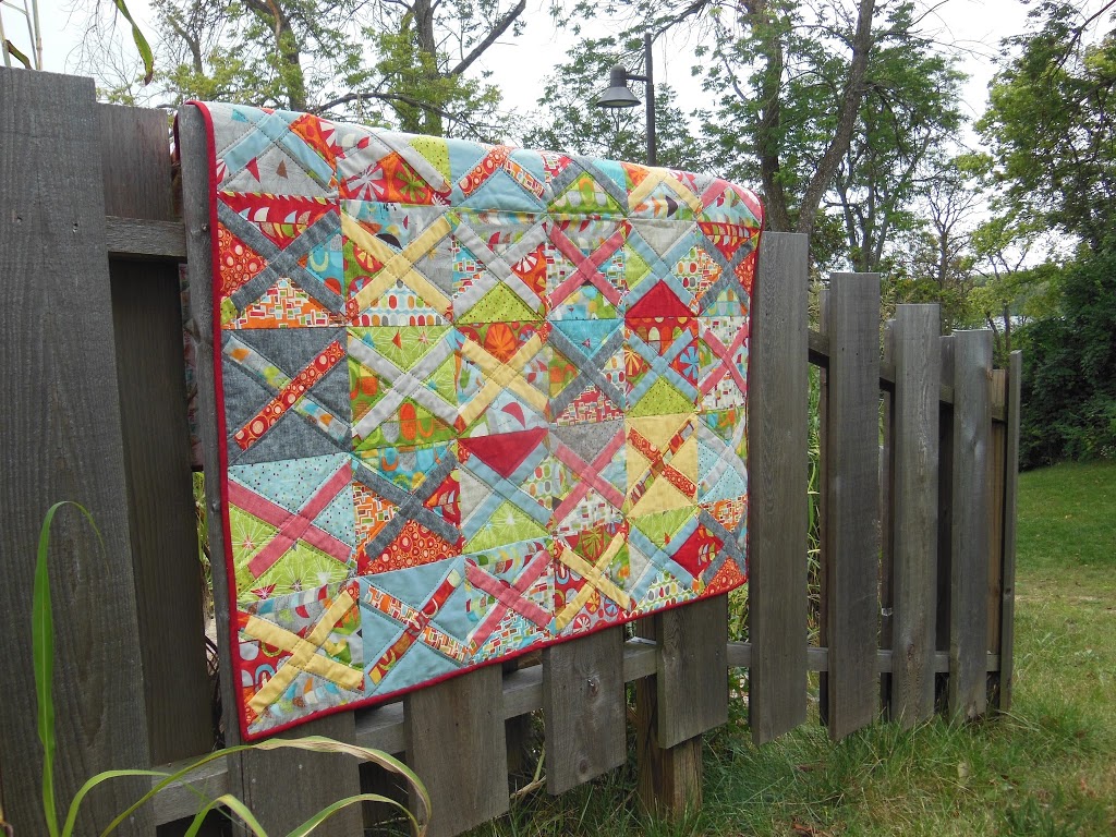 treasure map quilt by sharon mcconnell, modern patchwork cross block with bright colors