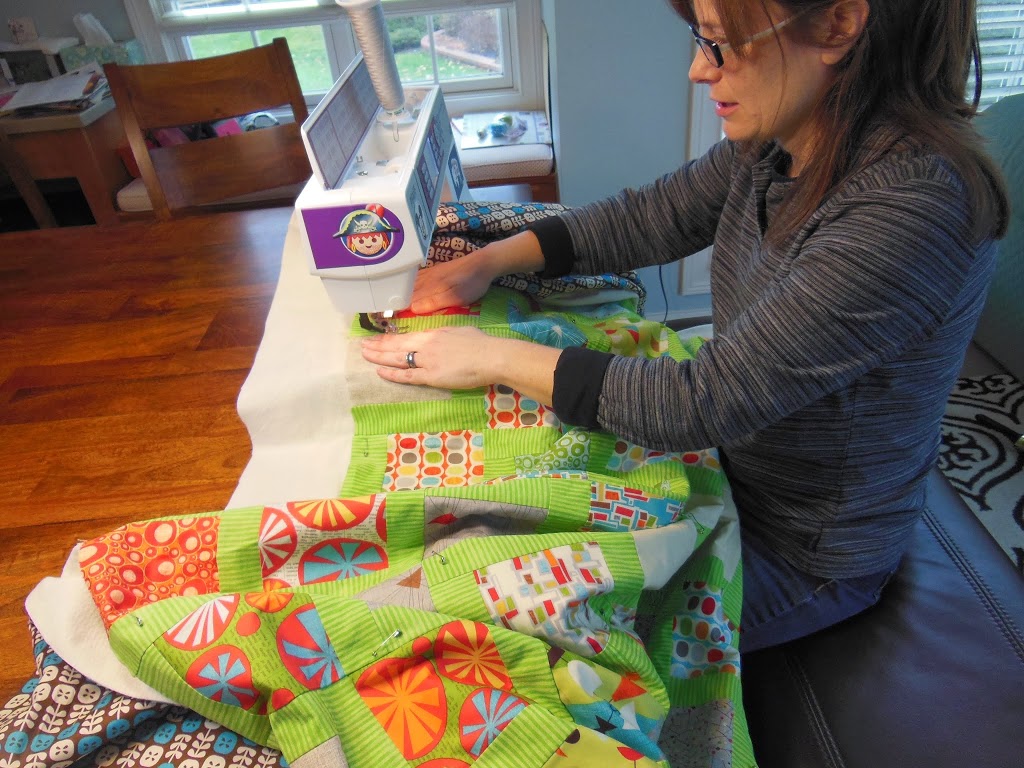 And she was totally game to get after the quilting! As she was going along she kept giggling and saying how excited she was and how surprisingly well it was going. Does everybody remember how exciting it was when you realized how much fun quilting is?