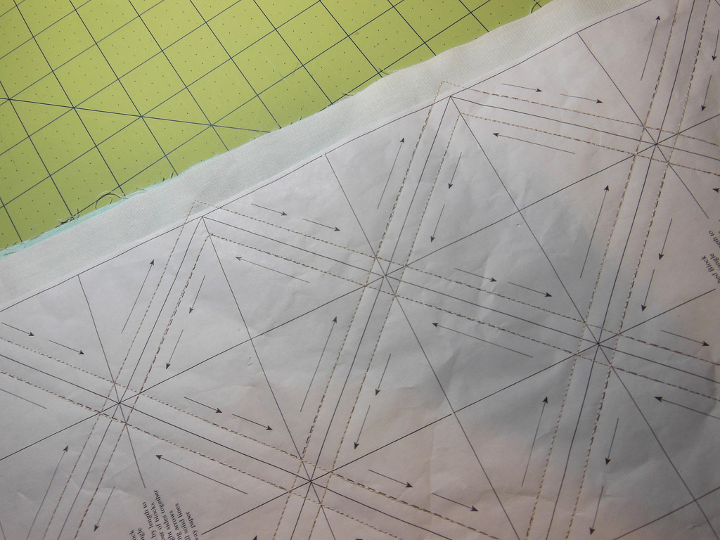 This week I am working on two things: quilting my double wedding ring quilt and piecing the churn dash blocks for the Midnight at the Oasis QAL.