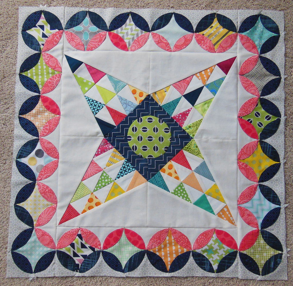 Welcome to the second official post of our Midnight at the Oasis Quilt Along! We have completed the center medallion star and the first border, the Orange Peel blocks! Be sure and visit the QAL page to see other posts along the way and visit the Flickr group for great inspiration. We are adding a linky at the bottom of this post for participants to show off what they have made so far, so be sure and check them out, too.
