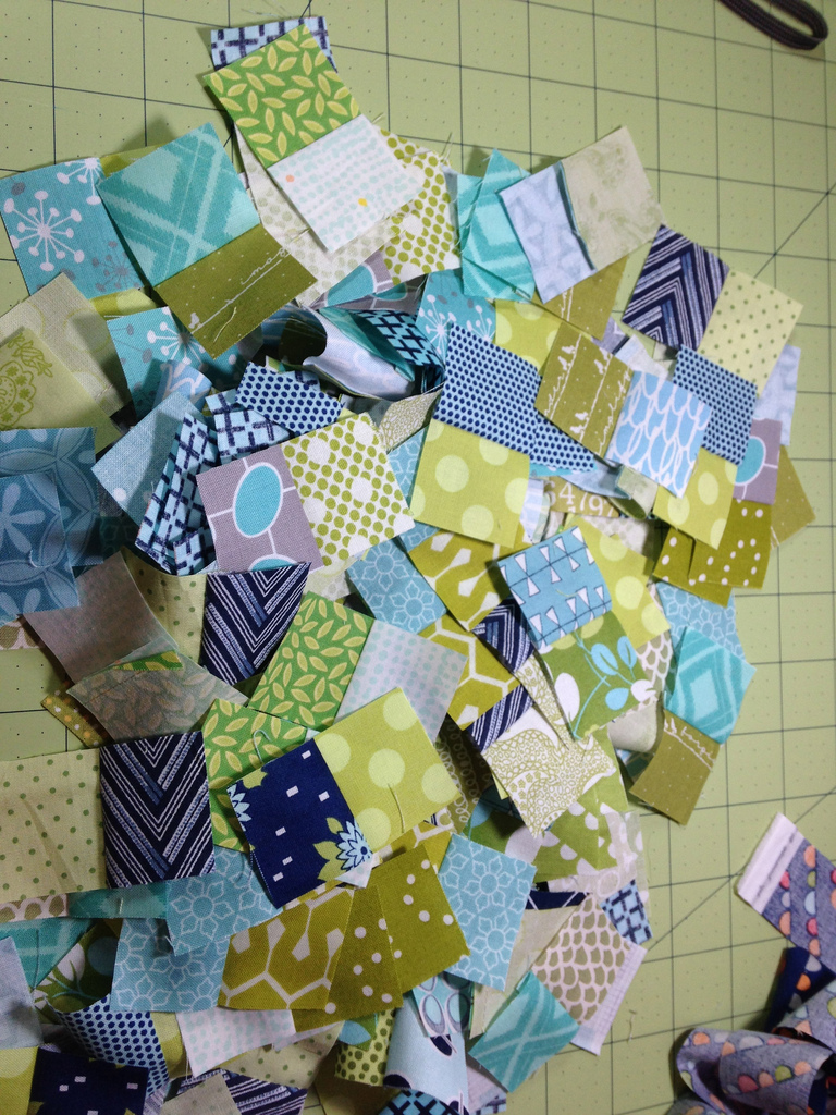 I decided to do all my squares in blue and green. Pulled tons of scraps from my stash and had a blast with the variety!