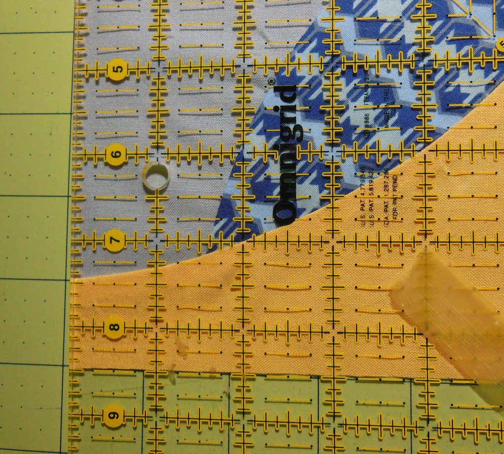 Use rotary cutter to trim G1 (gray in photo) fabric to this size.