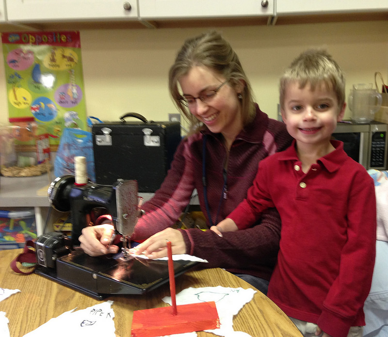 …taking my sewing machine to pre-school to sew sails for homemade sailboats!