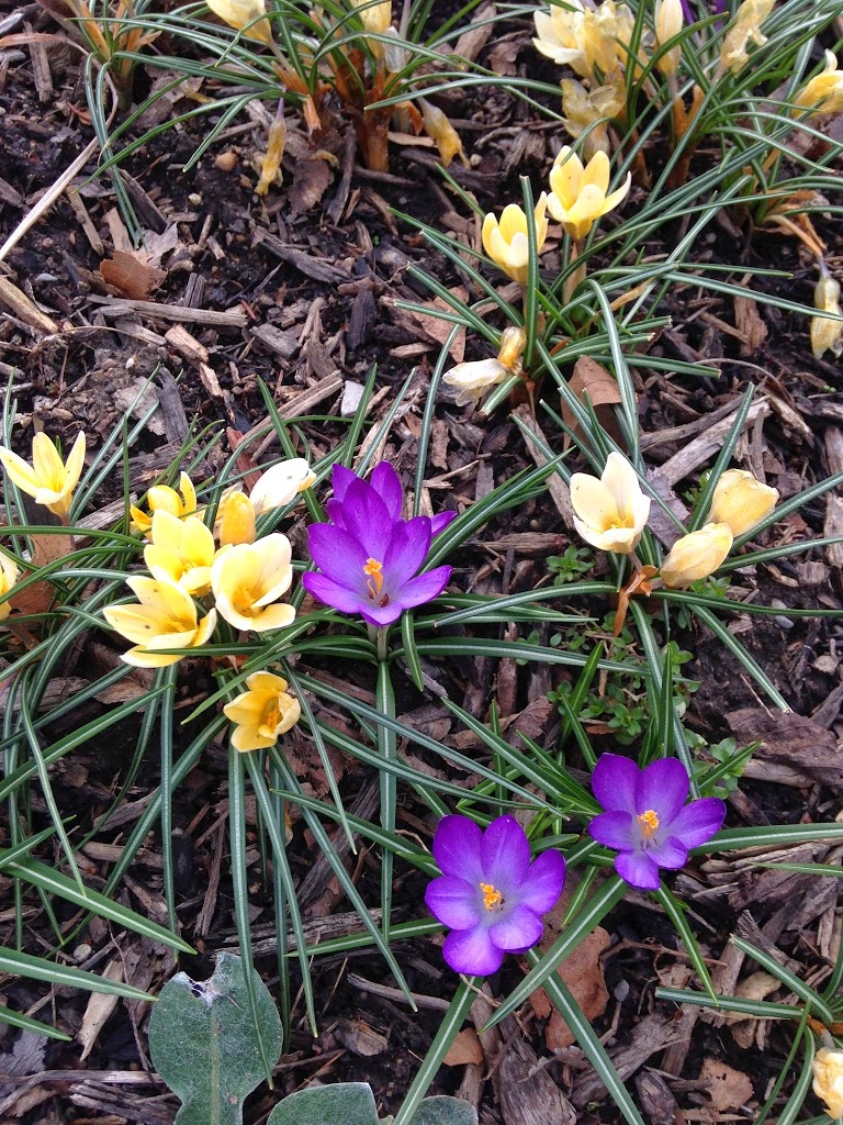 The first flowers are blooming in my garden, tiny little crocus bulbs. They are so cheerful and bright!