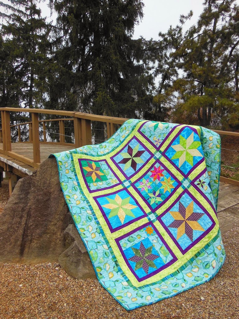8 thoughts on “Lemoyne Star Blockbuster Quilt Finished!