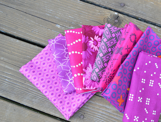 And yet…Last fall I fell in love with the fabric collections “Clover Sunshine” and “Sun Prints” by Alison Glass (Andover Fabrics). They have an abundance of uncommon shades, from lavender to fuchsia.