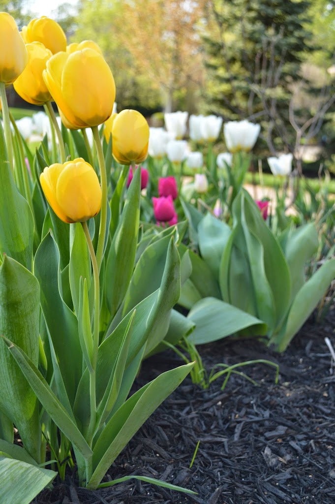 Love your colorful dianthus around the spring tulips! My daffodils are just starting to bloom and the bed they’re in needs a lot of work…more work than I currently have energy, but hopefully it’ll get attended to soon enough. Cute bags! Especially like the pop of pink lining.