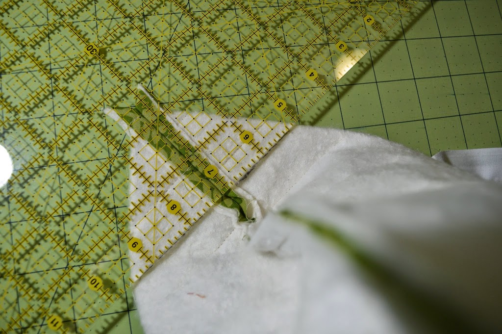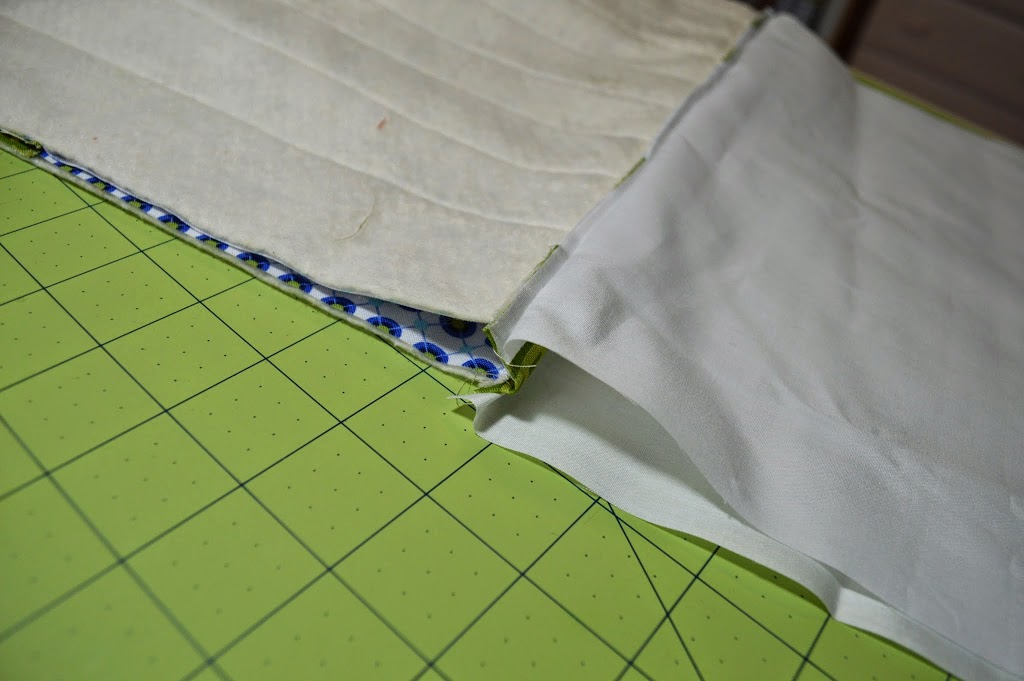 3. Trim the excess batting to square up the panel. Repeat these steps with the other outer pouch pieces and batting.