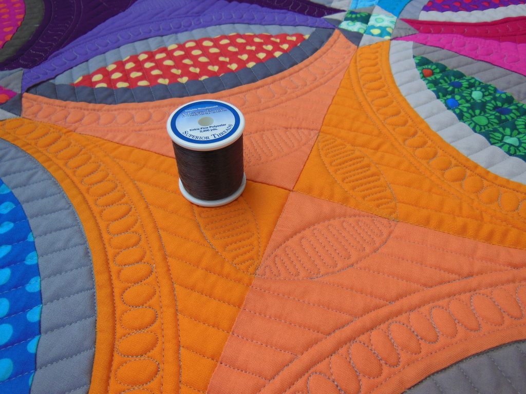 I love striped binding, but have only used it occasionally. I prefer to bind with something that is used in the quilt, but don’t often have enough. I don’t plan for my binding when I’m buying (collecting) my fabrics, so have to scurry around to find something. I also don ‘t plan my backing until I get there. Seems to be a theme there?