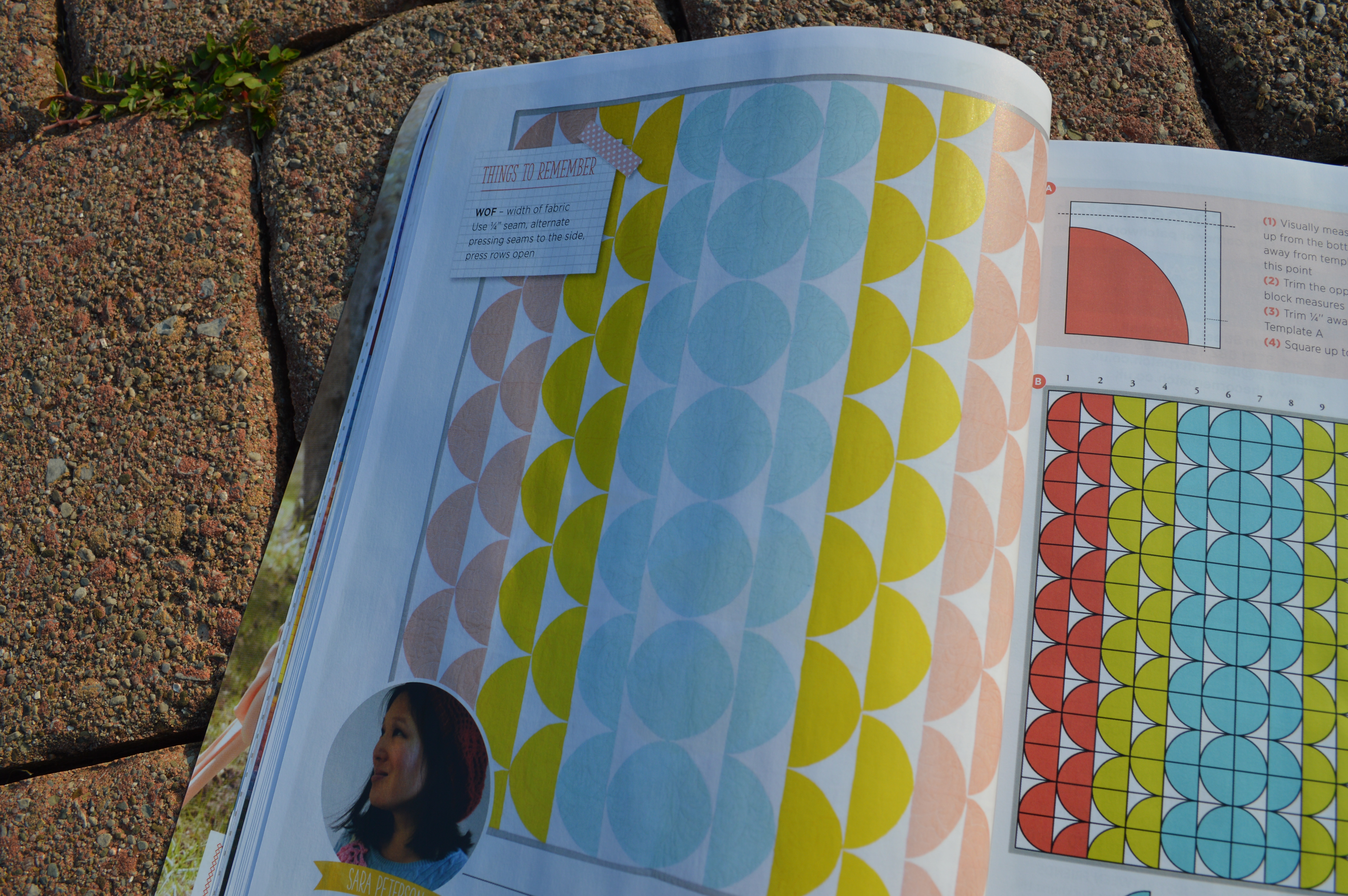 I am really excited to have the first issue of Quilt Now, a brand new magazine from the UK edited by Katy Jones. It is available here in the States in digital form or from Pink Castle Fabrics (I subscribed through Pink Castle). After meeting Katy at Camp Stitchalot in June, I was really anxious to see what this magazine had to offer. She has had great projects published in other magazines and is really just a cool person, so expectations were high.