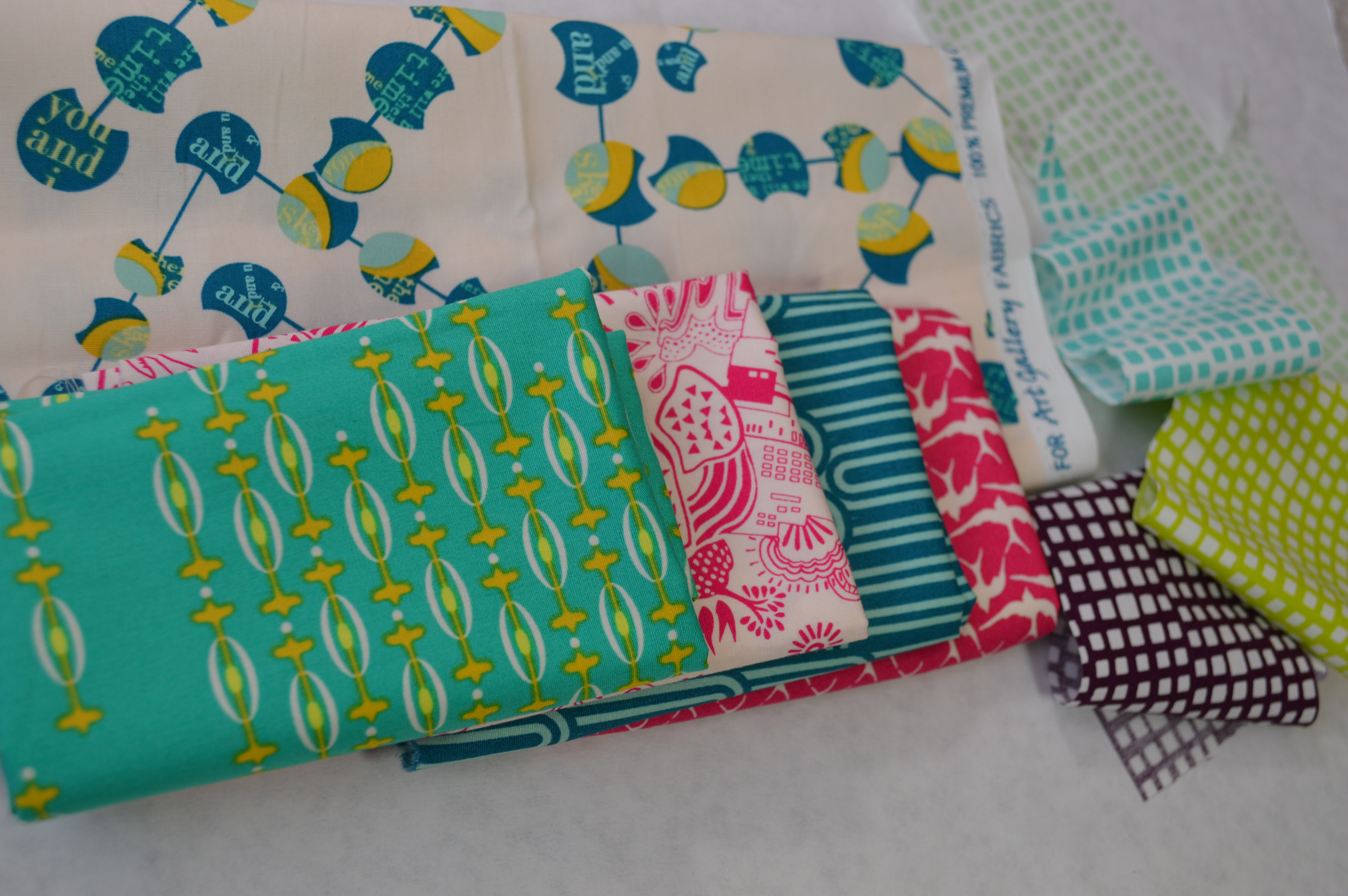 I do have to say: I am really happy to have the opportunity to sew with these prints. I knew I wanted some as soon as I saw them pop up on websites: those bright colors are perfect! plus, I already had a bundle of the Art Gallery Fabrics “square elements”, which are part of their “basics” collection. I knew they would be perfect as the supporting fabrics.