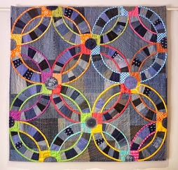 modern wedding ring quilt with denim fabric, bright colors, ring quilt