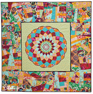 modern quilt with pieced medallion and scrappy border fabrics