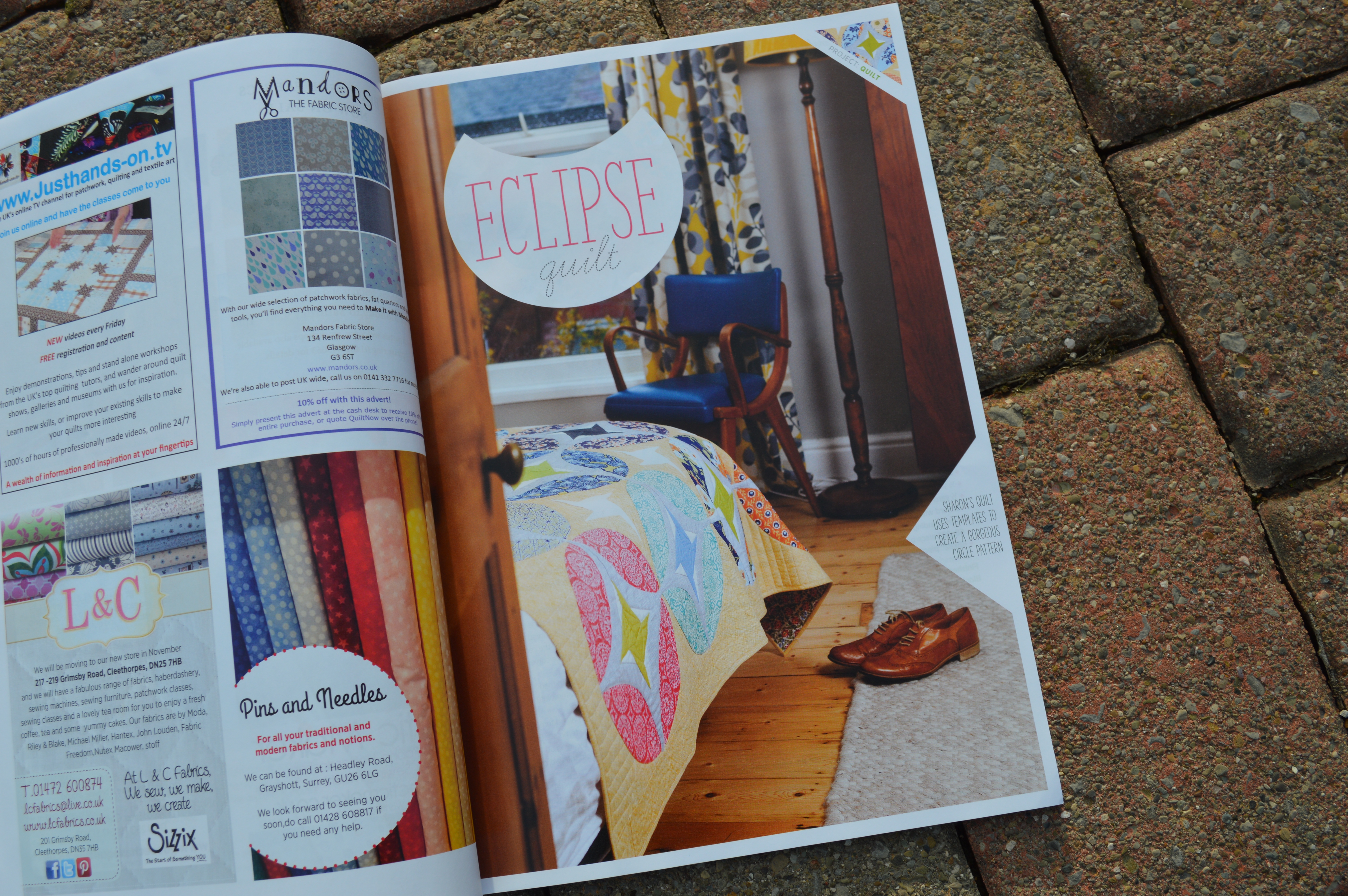 I am so excited to share this quilt pattern with the world! I previously posted about my Eclipse quilt, Here. Now you can make one, too, if you have the latest issue of Quilt Now. I know that Quilt Now is not widely available in the States, so for my fellow Yankees, I will have the pattern available to purchase soon, too.