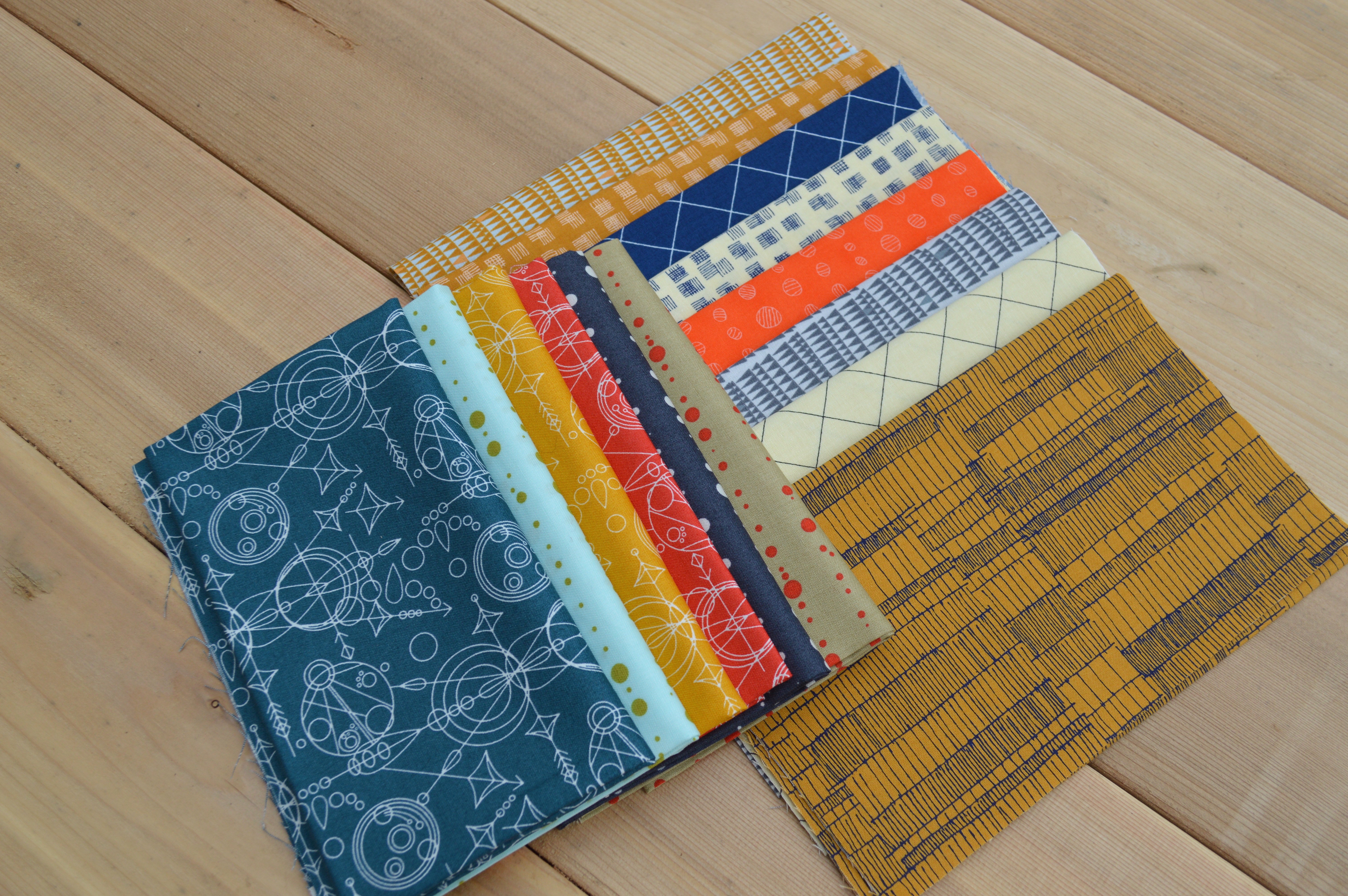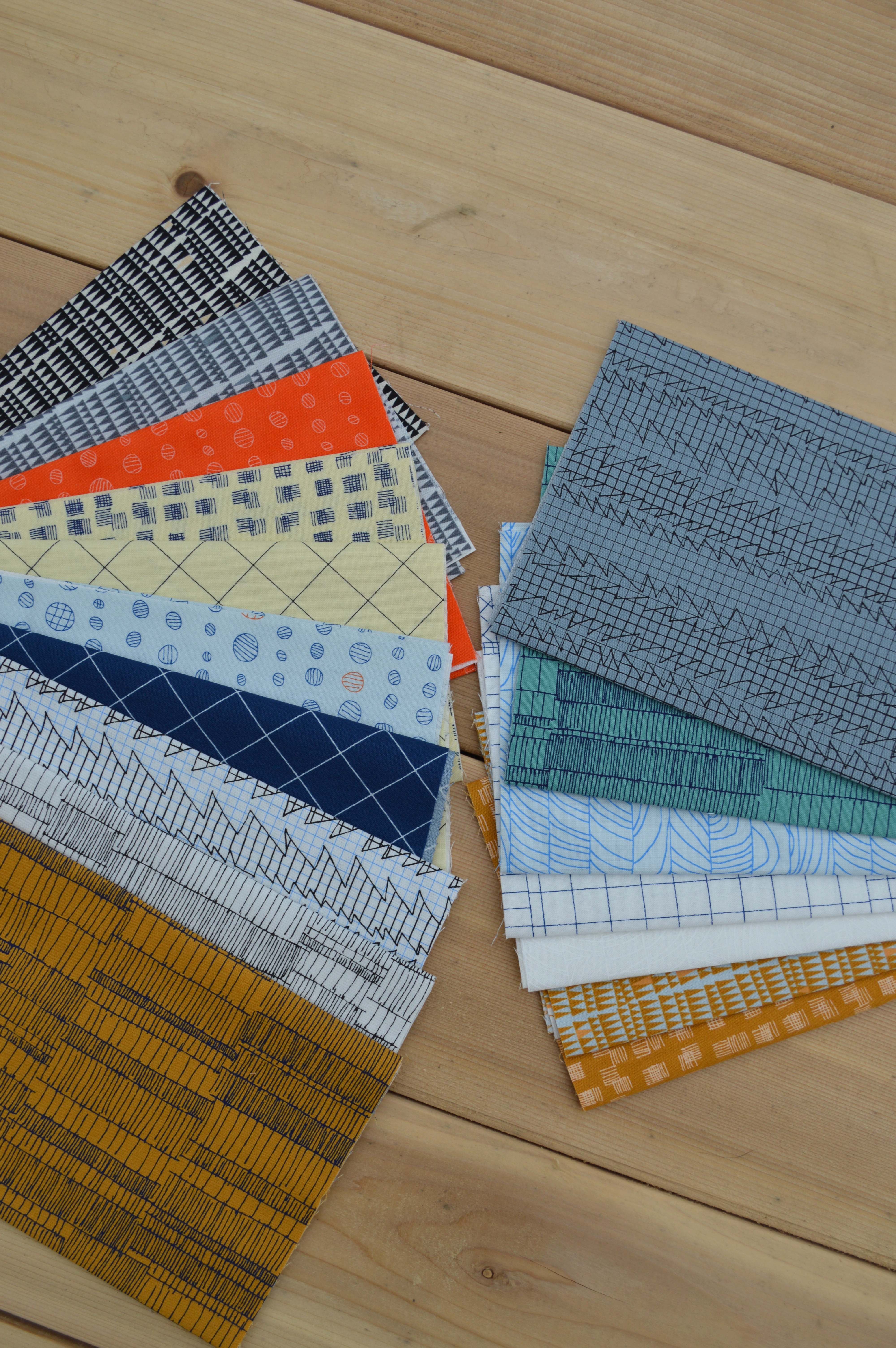 This is me being very predictable: Alison Glass sunprints (if you are new to this space, I have a real thing for Alison Glass’s fabrics). The colors in these 2015 Sunprints are absolutely dead on with the Doe fabrics, and another way to continue the original color palette of the Doe Fabrics. I like this grouping because so many of the fabrics “read as solid”. You could do some great piecing with these prints without losing detail to the busy-ness of the fabrics.