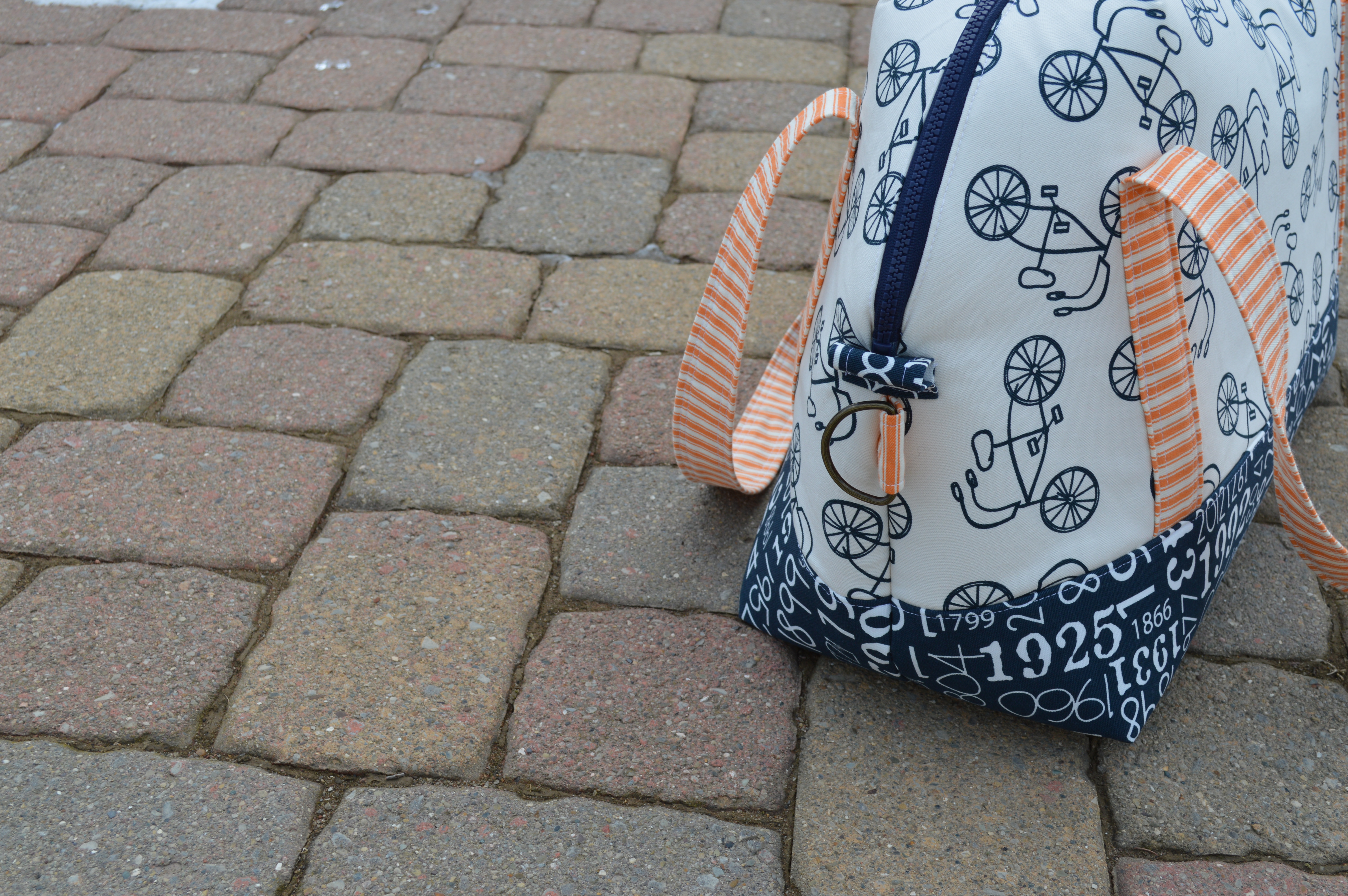 Looks great – I had the same problem on the bye bye love bag at the end of the zip – you solved it way better than I did! Love the bicycle fabric and the pop of the orange!