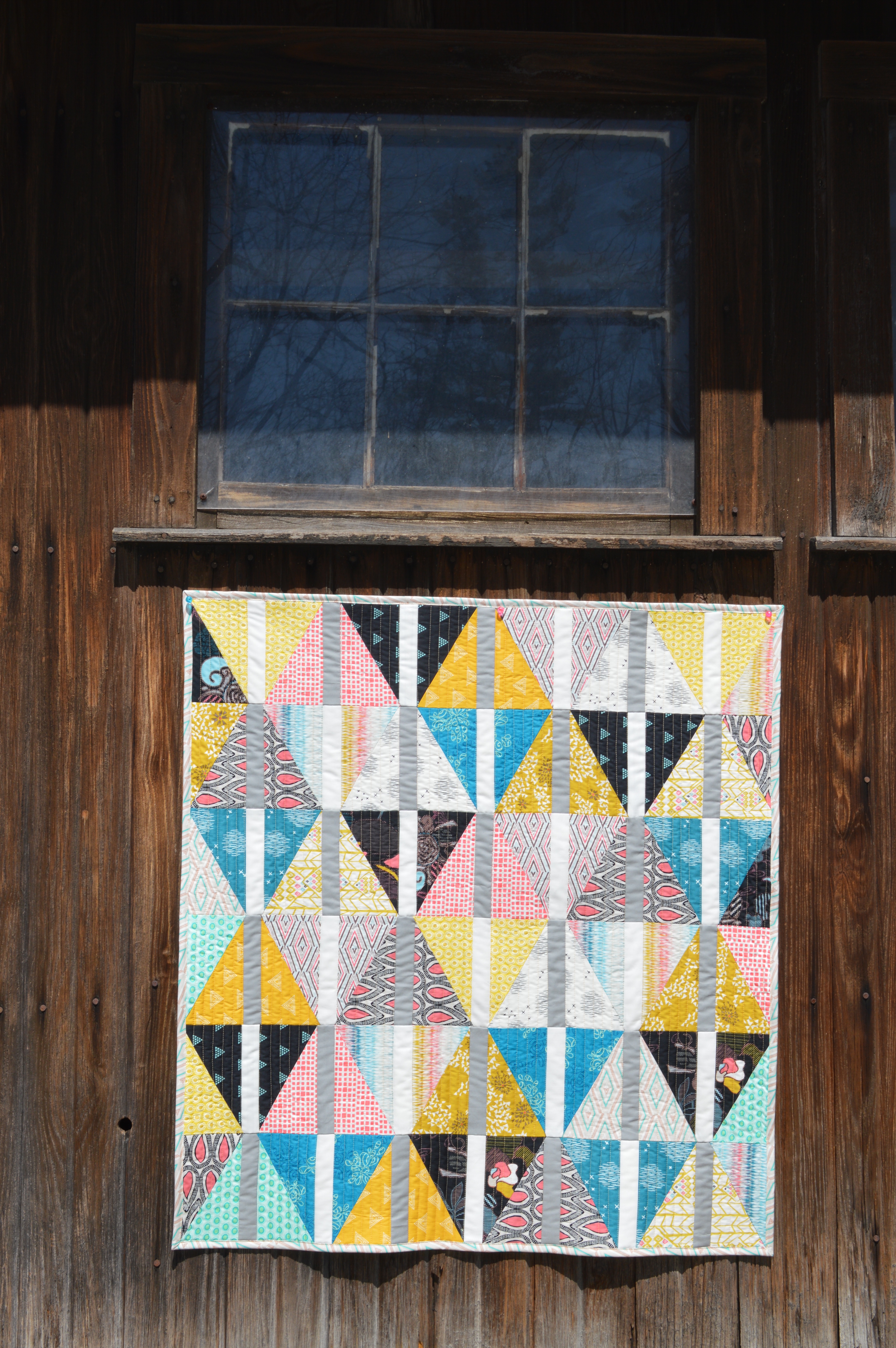 Gorgeous quilt!! I love the triangles “broken” apart by strips – so cool!