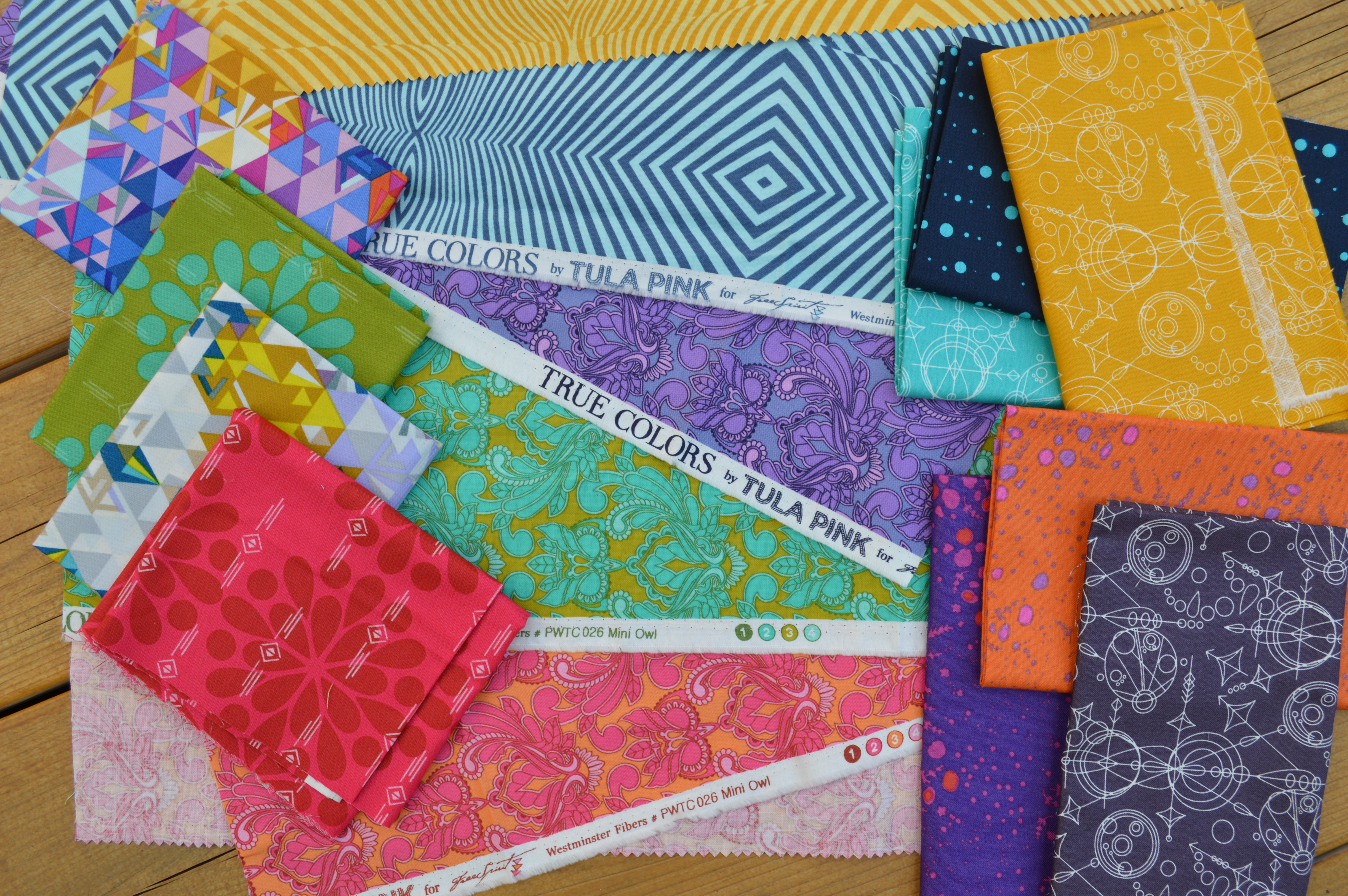 It probably comes as no surprise that I have a new favorite fabric range about every other week, and it is also not a big surprise that I am totally in love with the new True Colors fabrics by Tula Pink. Just look at them. Color Girl, indeed. There are more prints to the range, but I got a little bundle of 12 for the monthly modern fat quarter club at the Fat Quarter Shop.