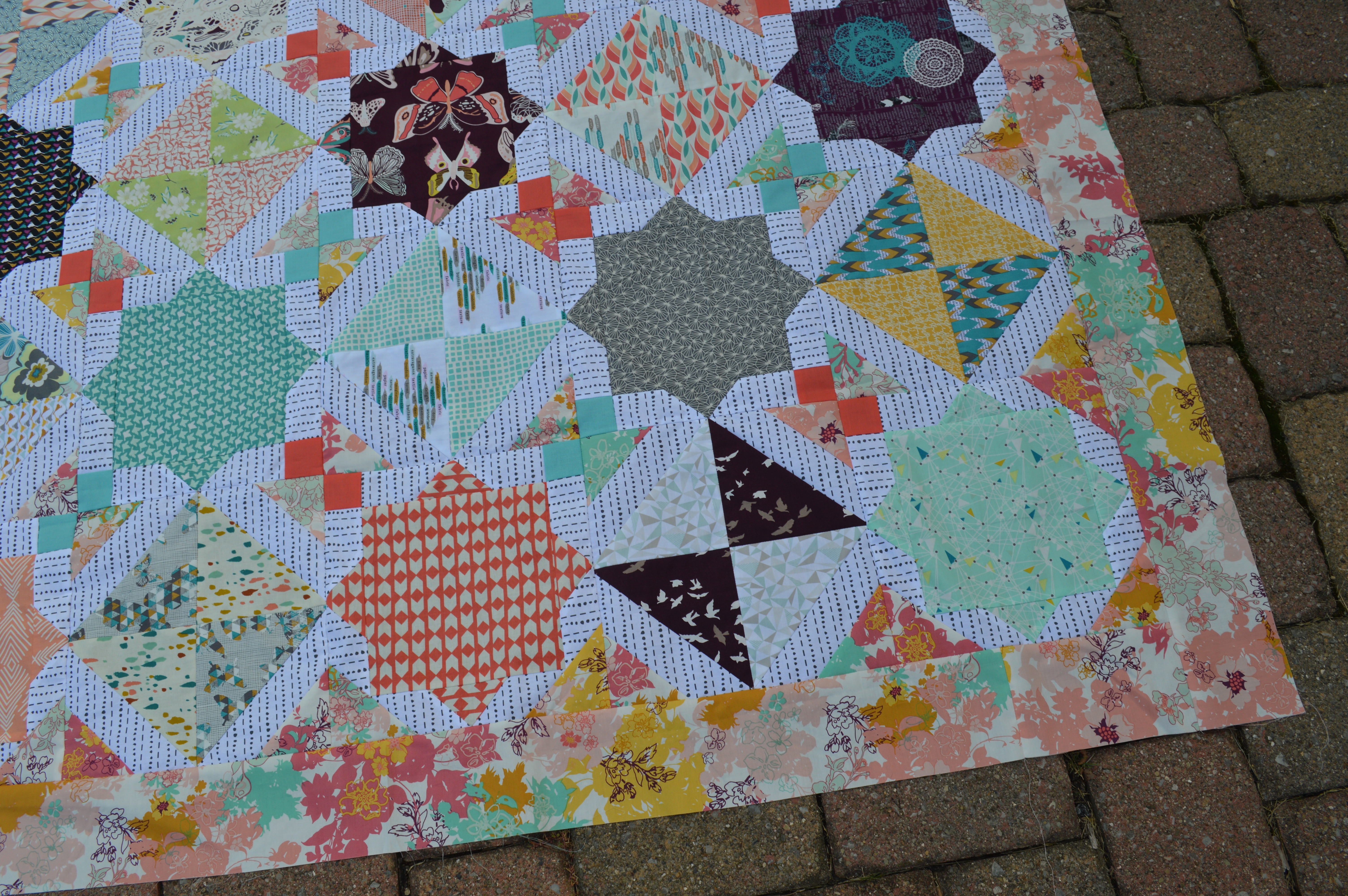 So happy to mark one quilt top off my Work In Progress list: this is my Talia quilt top, made from a pattern I designed last winter for Hoffman Fabrics (you can download it free Here).