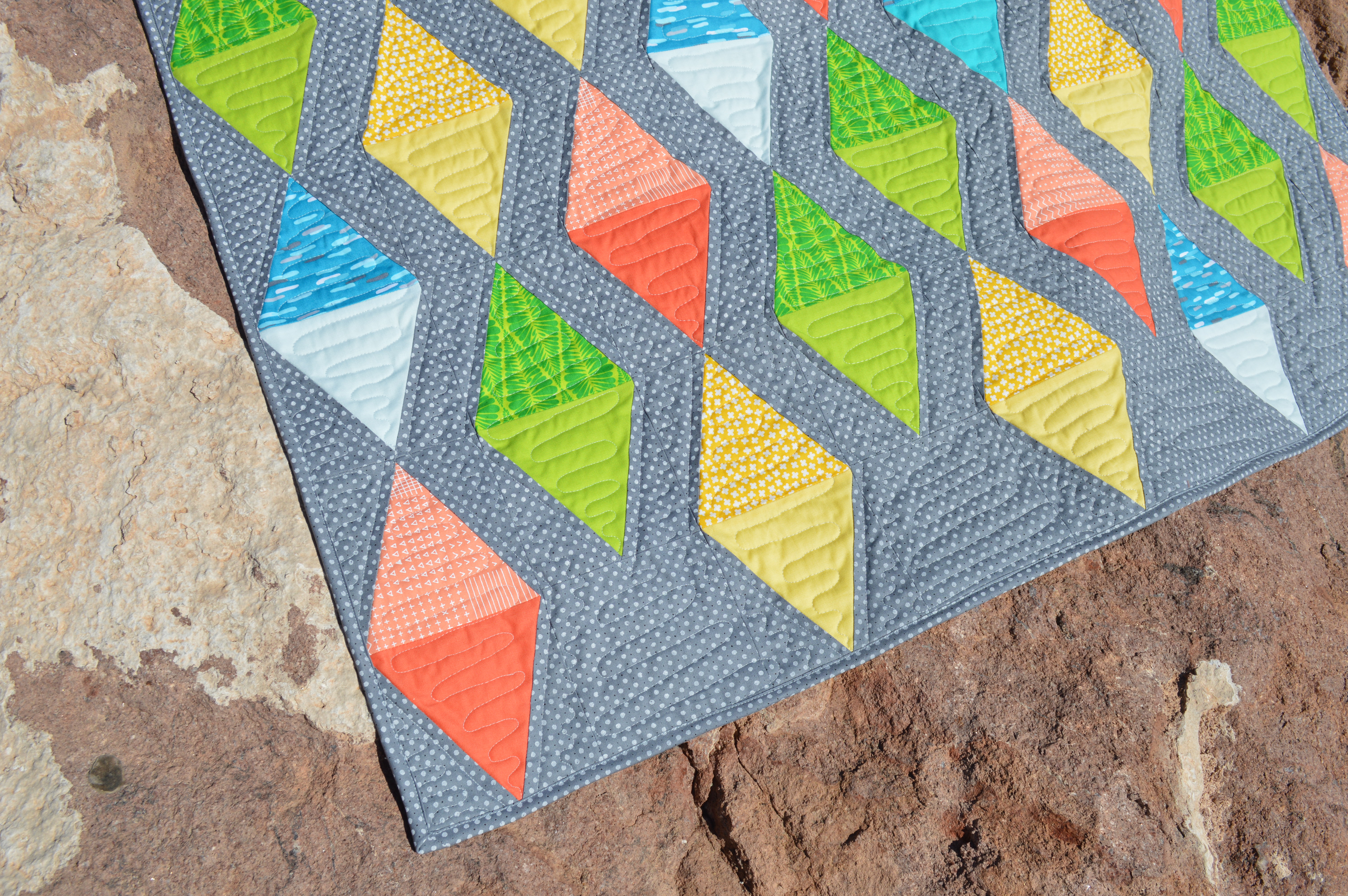 Last week I showed you this quilt in progress….and I am so happy to have it finished already. I made this quilt to test out the Tri-Rec tool ruler by EZ quilting. The pattern will be included when you purchase the tool, so look for the new packaging including this quilt later in 2016.  EZ quilting tools are available at craft stores (like Joann here in the US) or quilting stores.