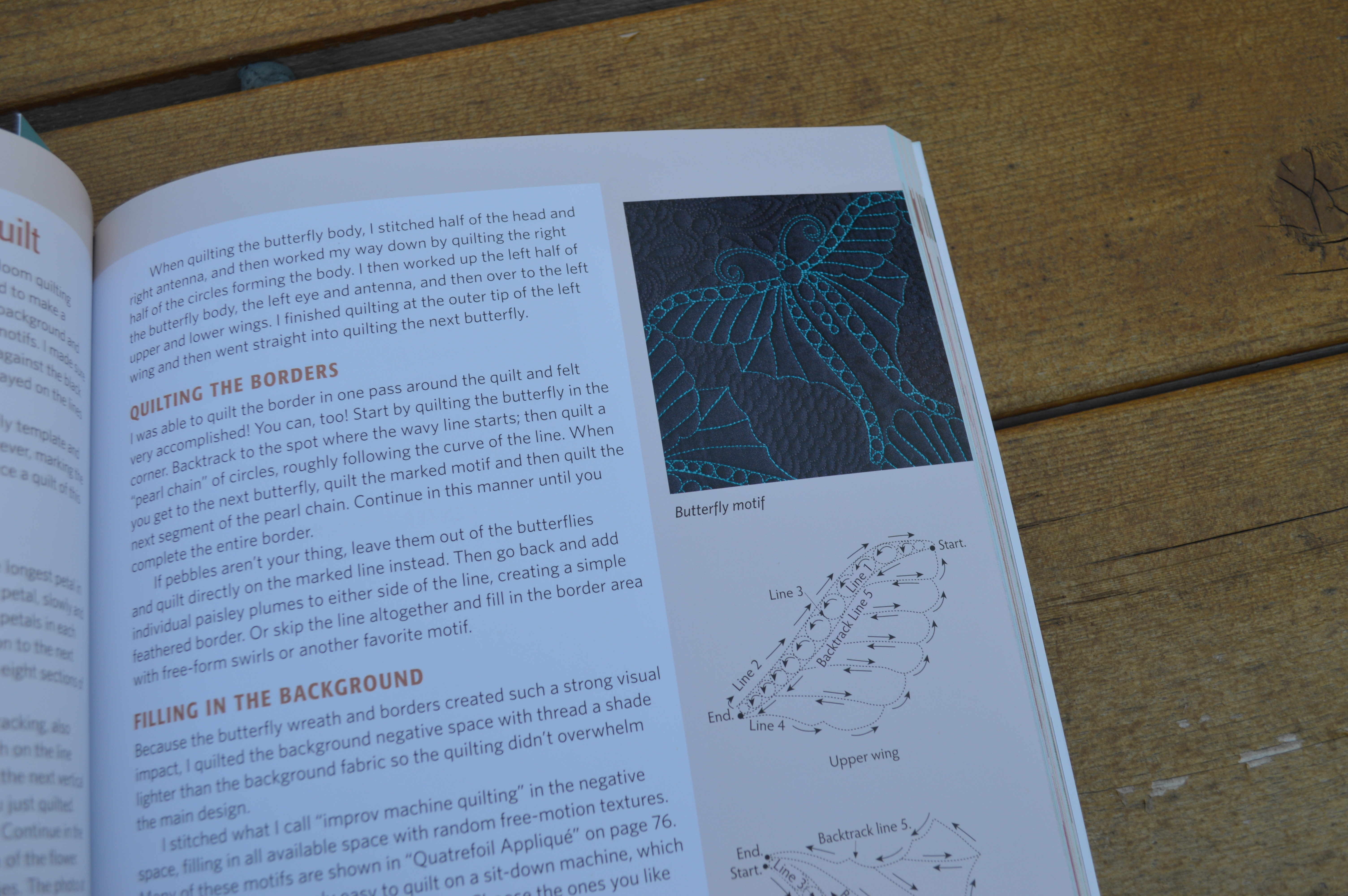 One of the things I loved about Christa’s first book was the level of detail and actual instructions provided. This book is just as well written…with a color coded layout for home machine quilting and long arm techniques. There are detailed how-to’s on the quilting designs and lots of pictures (I love a lot of pictures).