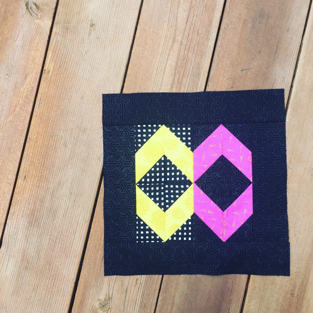 The bee is two weeks old, and these are my first two blocks. My plan is to use bright prints from my stash of Tula Pink and others. Each block will have a black and white print and I am alternating between black and white solid backgrounds. So, we will see how it all comes out…should be a fun, bright quilt in the end!