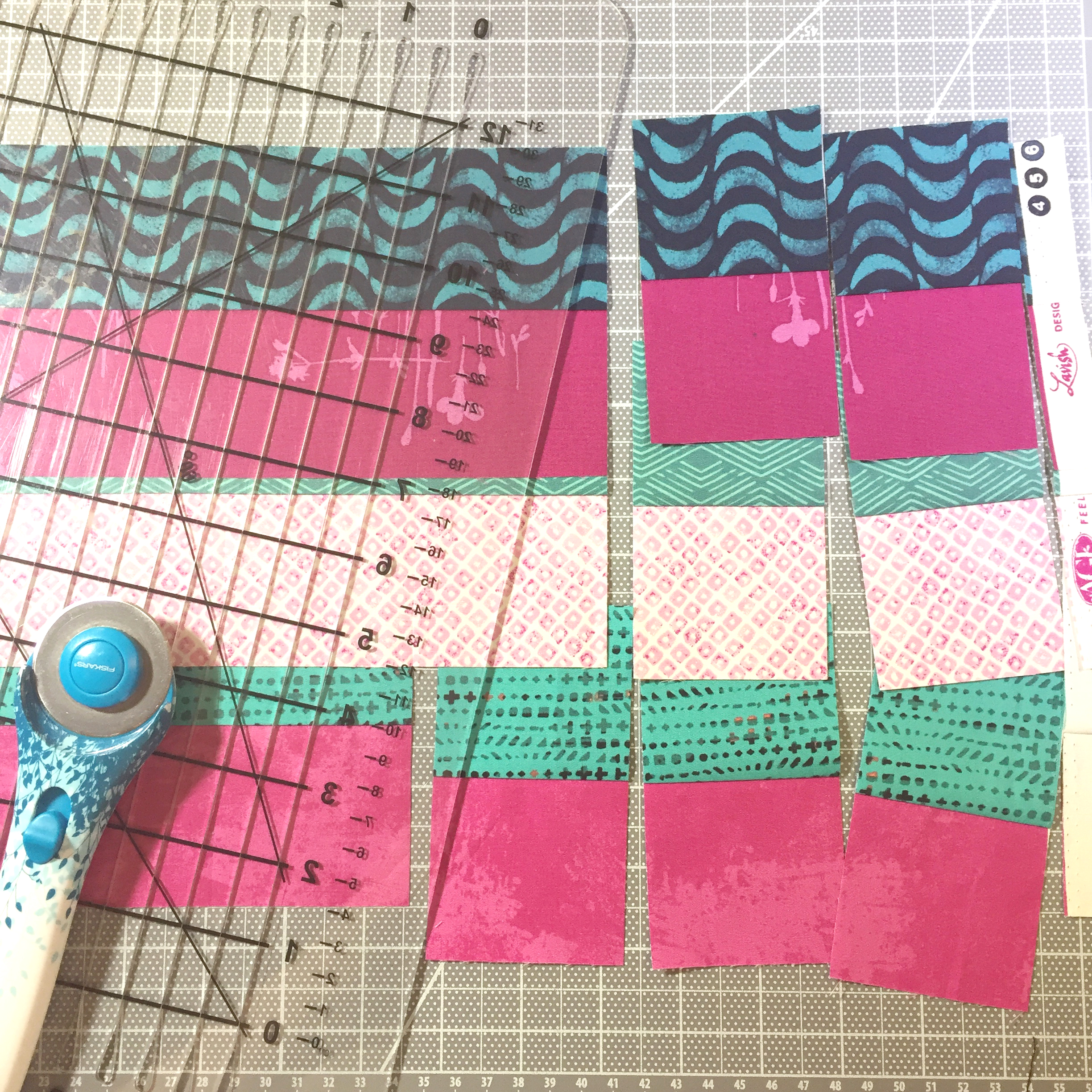 Once the borders are all sewn, trim to the correct width (don’t forget to leave seam allowance). I do this because narrow strips can get distorted when you sew or press them. By cutting them a bit wider and then trimming down, I know the finished result will be perfectly straight.