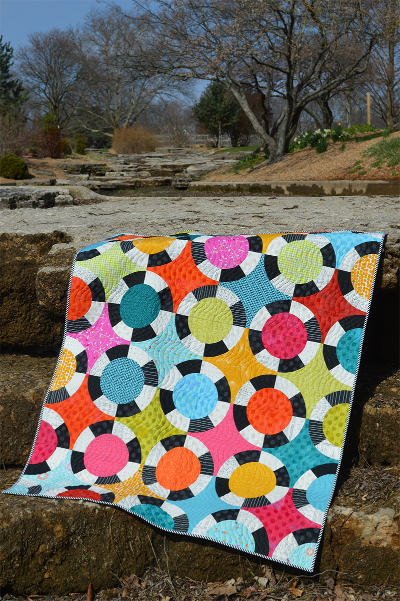 Who else loves black and white with bright colors? I have been on this as a bit of a theme for a while now and can’t get enough of it. I do have some ideas for making Black Jack pattern in other styles. It would be cool to use all the same fabric for everything except the black and white rings, then make those rings in all different colors. You could also change up the emphasis by making the rings in low volume prints and making the other shapes in your favorite prints so they really show off. So many possibilities. (-: