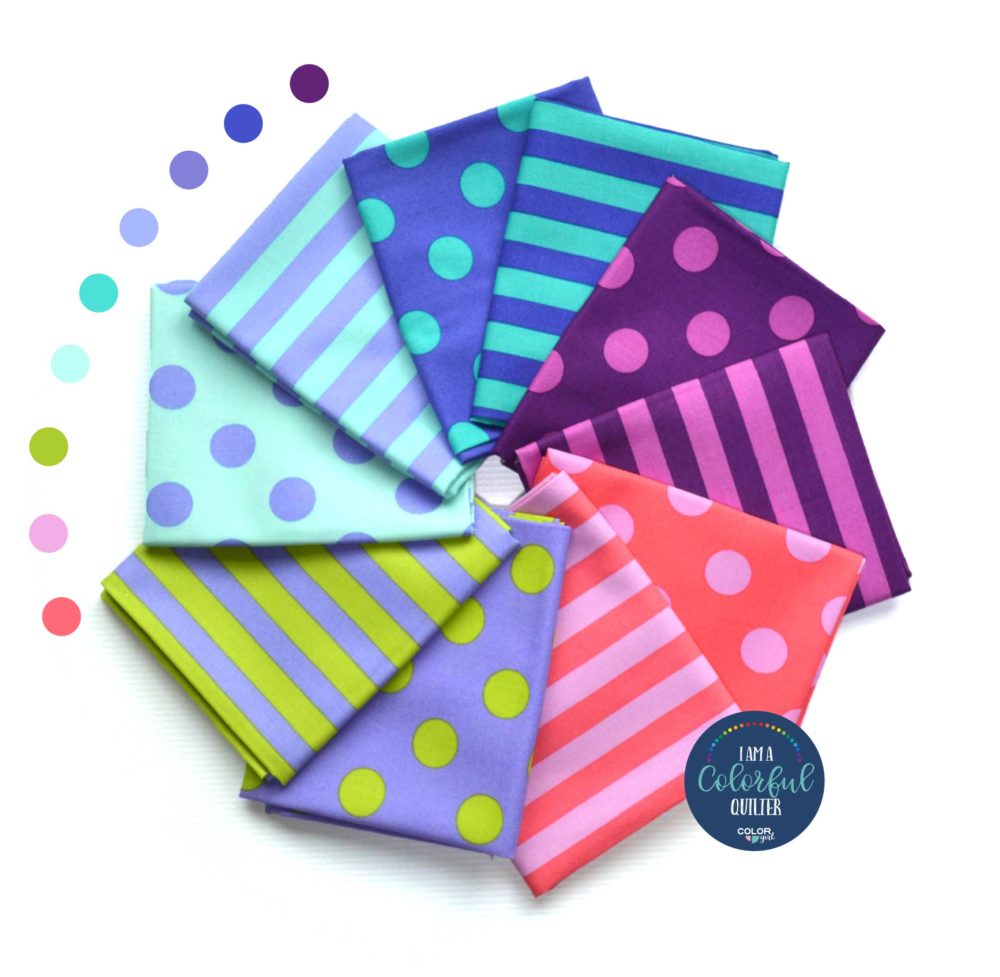 One lucky participant will win a Tula Pink Dots and Stripes bundle and any Color Girl pattern of choice from the shop. Here’s what you have to do to enter:
