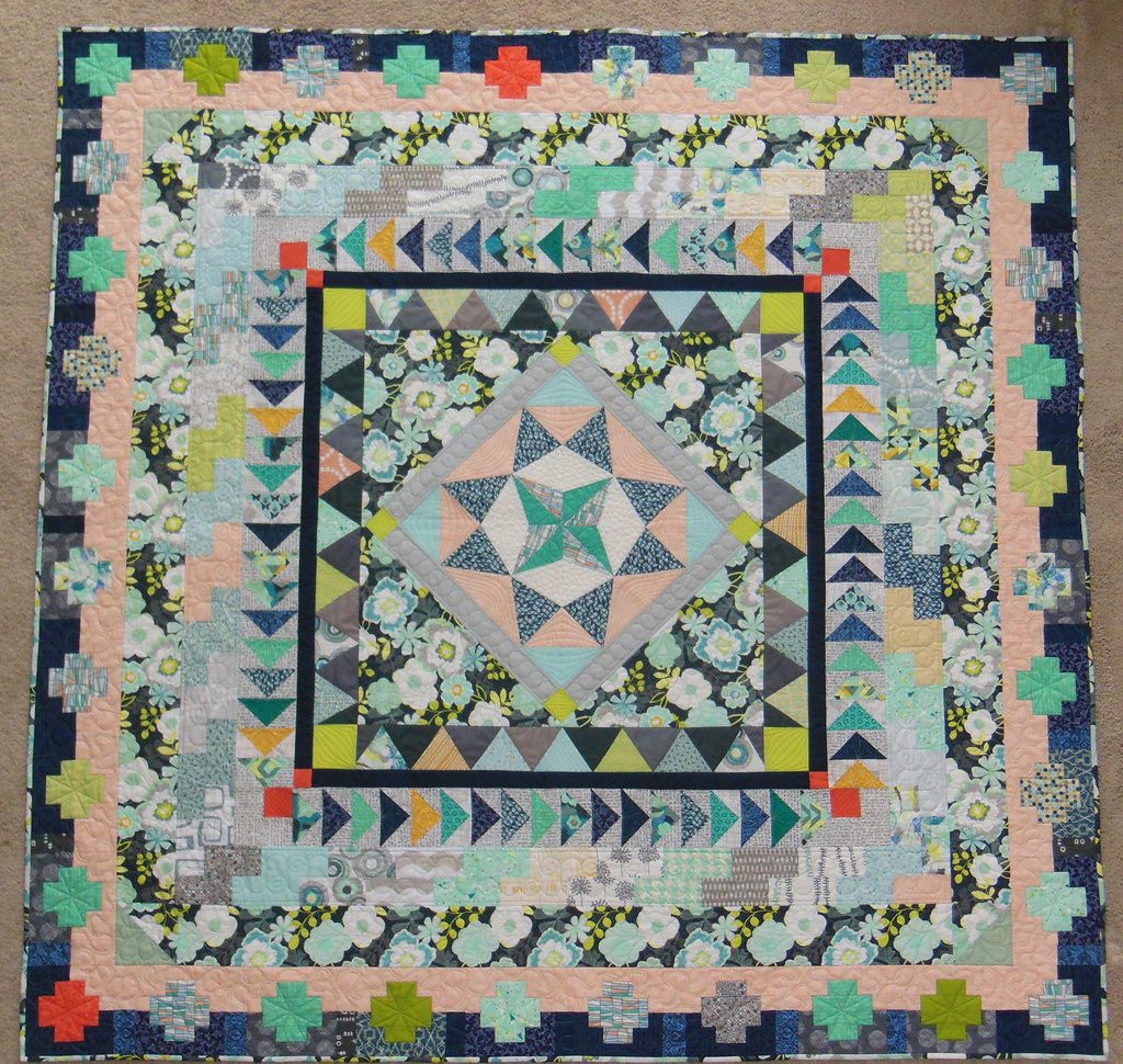 I had my Marcelle Medallion quilted professionally, so it took a little bit. I posted about the finished top back in September, but I just go it back and bound! (thanks...