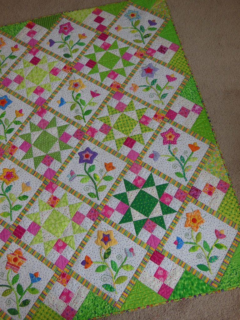 I have (finally) finished my Summer Blockbuster quilt...