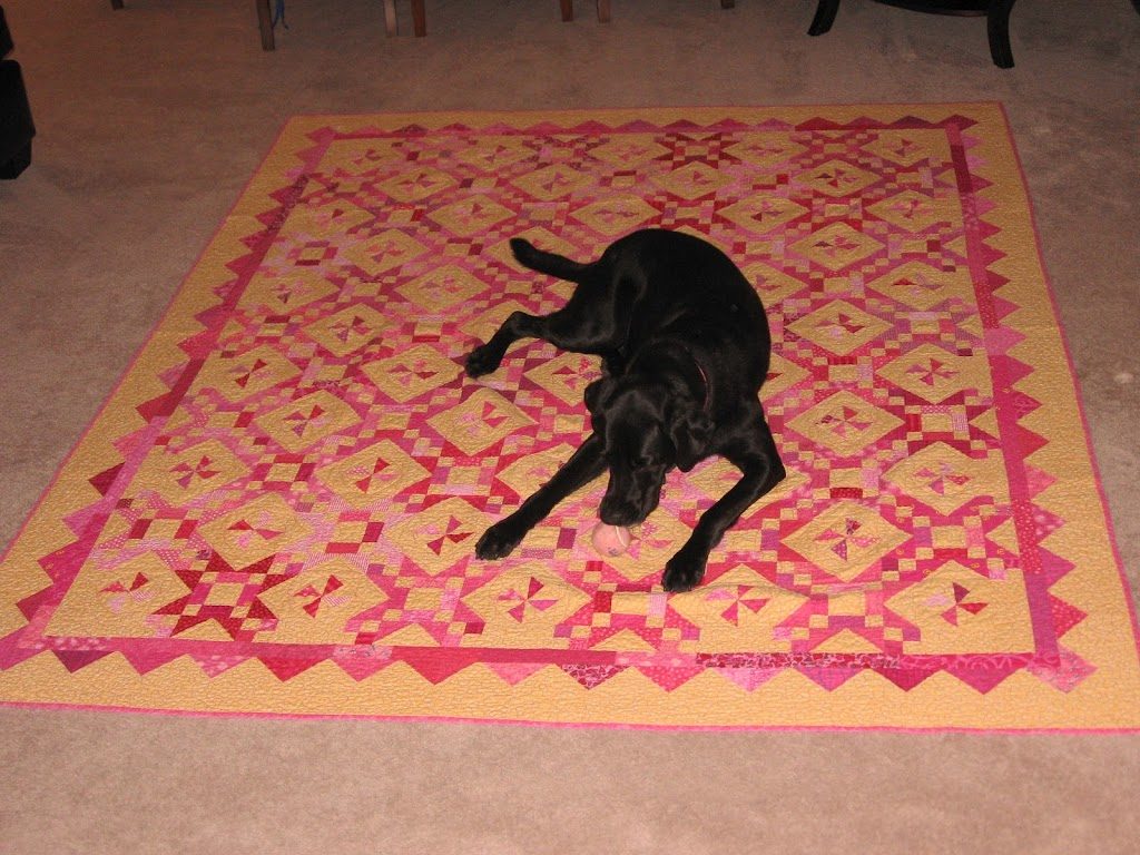 Lookie! I sewed it up today. What do you think? I feel like it needs something to frame it, but not sure what to do for borders. Any Ideas? Maybe turn it on point...